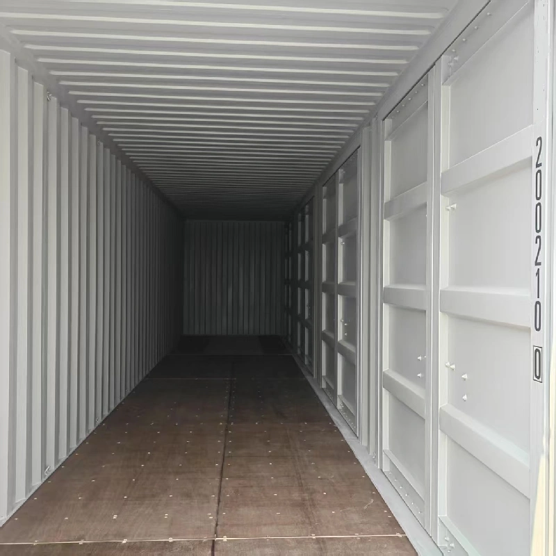El contenedor de cubo de 40 pies de altura con 4 puertas laterales conserva todas las funciones y características del contenedor estándar de cubo de 40 pies de altura (40HQ). Además, el diseño de apertura lateral permite una carga y descarga más rápidas de productos; Proporciona más perspectivas para verificar los productos dentro del contenedor; Si está equipado con algunos accesorios de repuesto, como kits de partición, se puede transformar fácilmente en un contenedor con diferentes zonas funcionales. La puerta lateral también es desmontable, y al agregar otros accesorios de repuesto, como puertas de vidrio, ventanas y barandillas, se puede convertir más fácilmente en una casa.